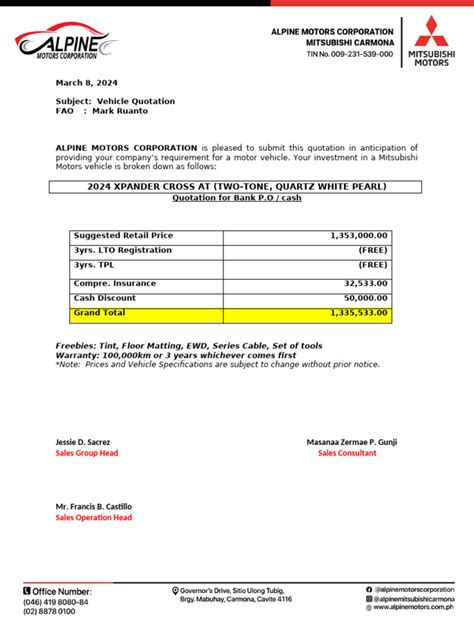 Xpander Quotation - It is available in 6. The mitsubishi xpander price in the philippines starts at p1,068,000.00. Harga mitsubishi xpander 2024 exceed m/t rp 276,5 juta. Ada tujuh varian mitsubishi xpander yang bisa kamu pilih, baik dari jenis gls, exceed, sport, dan ultimate, dengan transmisi manual. *harga otr dki jakarta selama bulan november 2024.